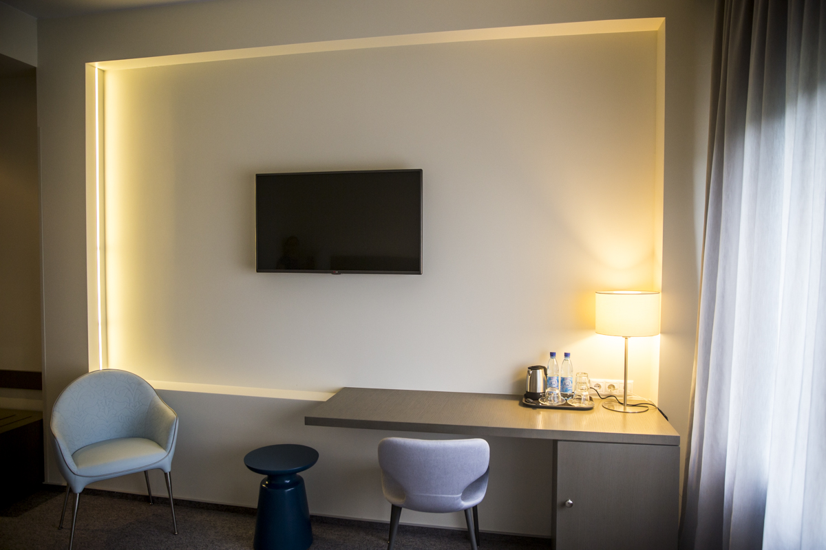 Номера оснащены всем необходимым для комфортного отдыха. В каждом номере есть беспроводной доступ к сети Интернет, телевизор, телефон, электрический чайник, комплекты столовых приборов, чайные чашечки, стаканы. Ванная комната оборудована феном, комплектом полотенец (3 полотенца на каждого гостя), а также шампунь, гель для душа и мыло. Всё продумано до мелочей - французский балкончик, просторные комнаты, стильная мебель - письменный стол и эргономичный стул, кресло из эко-кожи и кофейный столик, шкаф-купе создают уютную обстановку номеров.